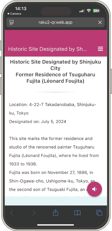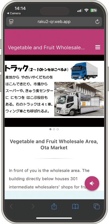 サインに標準でつくQRコードを読み取るだけで、瞬時に手元のスマホの表示言語で案内解説をしてくれる低コストオプションサービスです。都度言語を選ぶストレスもありません。